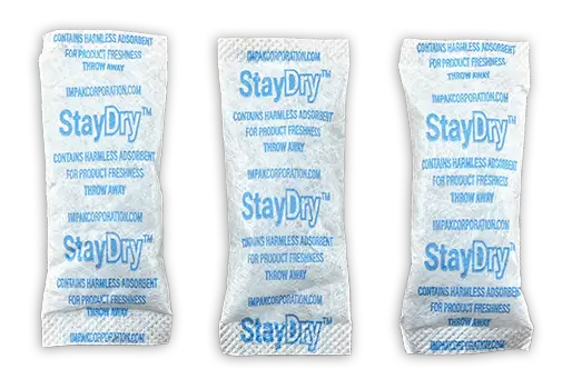 IMPAK is a world leader in the production and distribution of moisture adsorbing desiccants. On top of having over 100 different desiccant products available at any time, we also produce unique products from various desiccant media, coverstock materials including Tyvek®, Teijin Unisel®, and various woven and non-woven configurations, and can create custom blends (for instance, by mixing activated carbon with silica gel, we can create a product capable of adsorbing both odor and moisture). Ask about our competitive pricing.